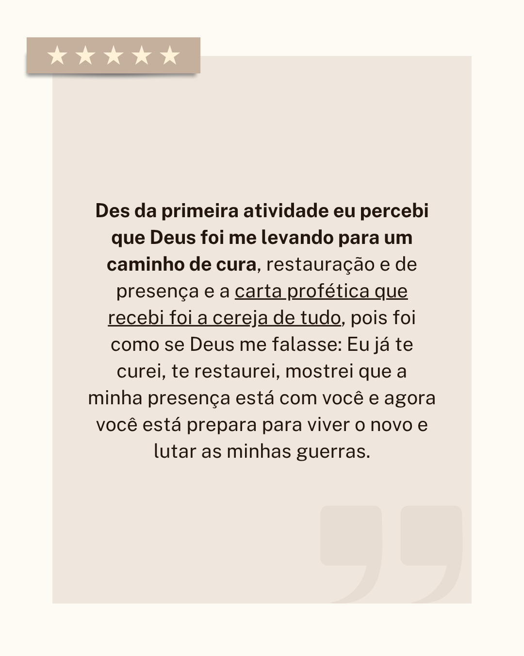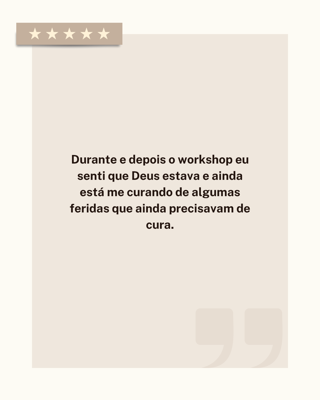 Se você deseja se conectar com Deus, com suas emoções, se expressar com liberdade e viver um processo criativo profundo e significativo, este workshop é para você!